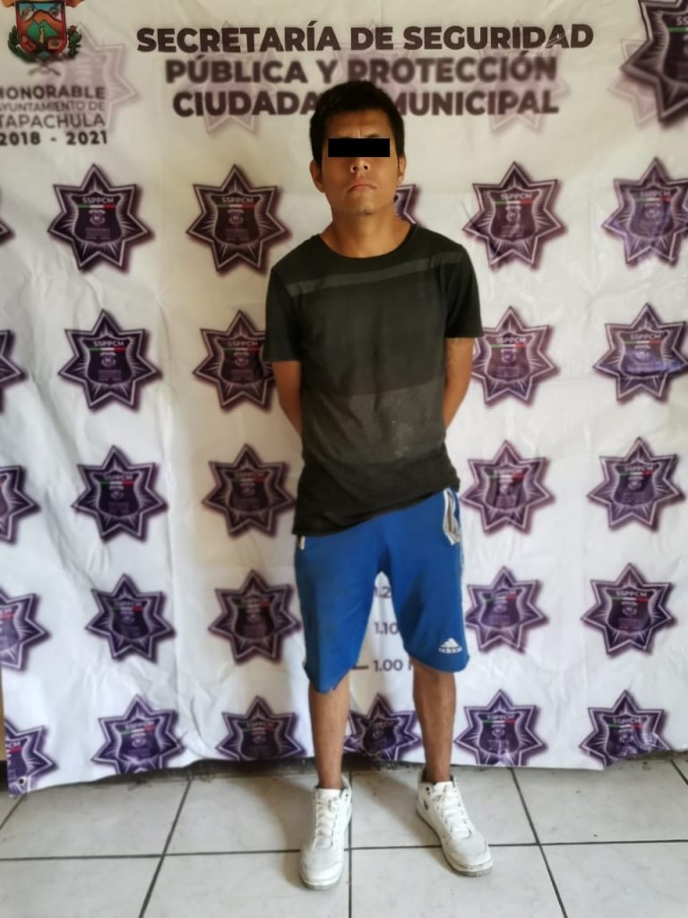 Tapachula, Chiapas.– Como resultado de la estrategia permanente de vigilancia, elementos de la Secretaría de Seguridad Pública y Protección Ciudadana Municipal (SSPyPCM), detuvieron en calles del Barrio San Sebastián a un sujeto de nacionalidad mexicana por el delito de robo.