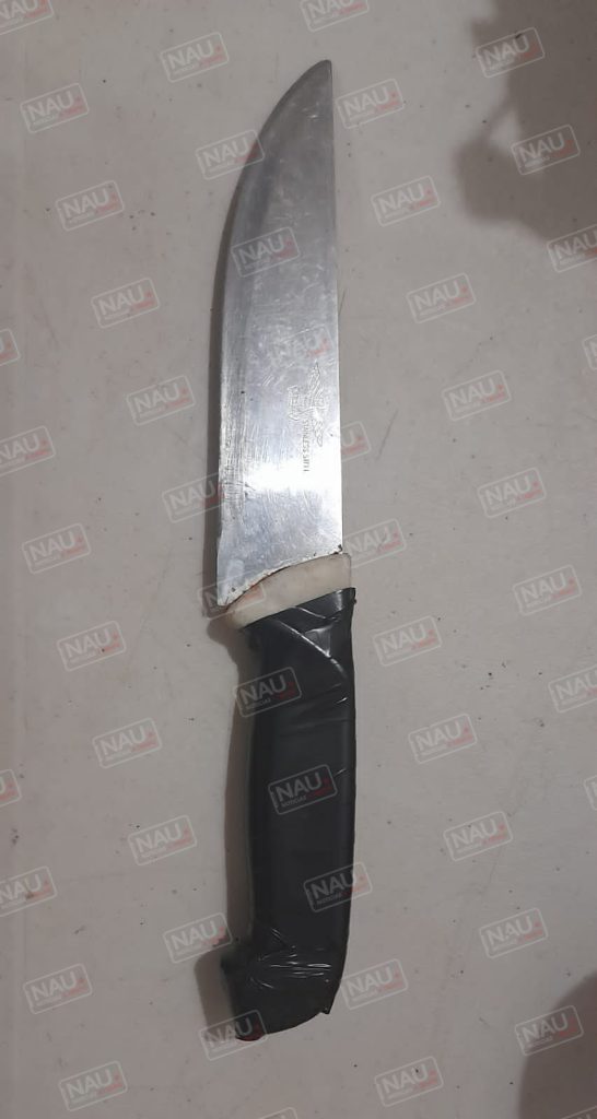 Por lo que tras ser sometidos y asegurados, entre sus ropas a uno de los dos mexicanos se le encontró un cuchillo grande de aproximadamente 15 cm, con cacha forrada de cinta de aislar, que no pudieron decir cuál era su uso o para que lo cargaban, por lo que se presume con realizaban acciones ilícitas.