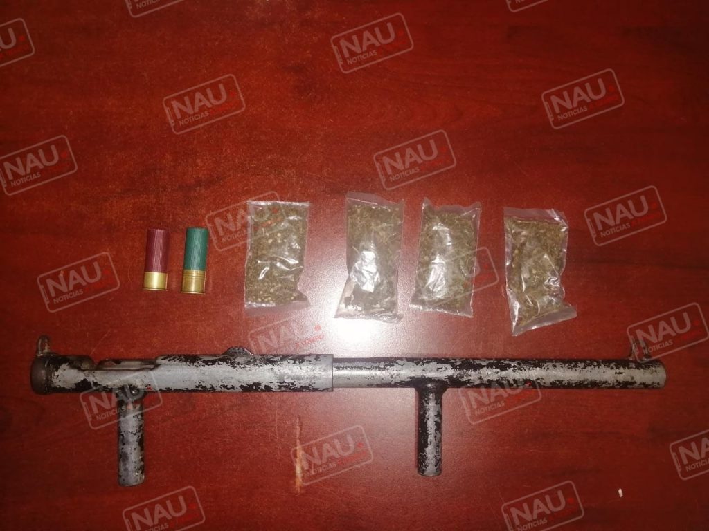 Los elementos policiacos lograron desarmar al sujeto, que tenía en la mano un arma de fuego hechisza de las llamadas chimbas, a quiénes encontraron 2 cartuchos calibre 12, y dos bolsitas de marihuana.