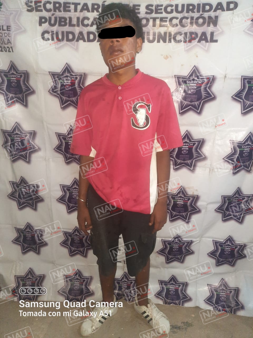 Los hechos se registraron en la calle Miguel Hidalgo y camino a San Antonio Cahoacán, mismo que fue puesto a disposición en la fiscalía de atención a migrante, por el delito de portación de arma hechiza y contra la salud.