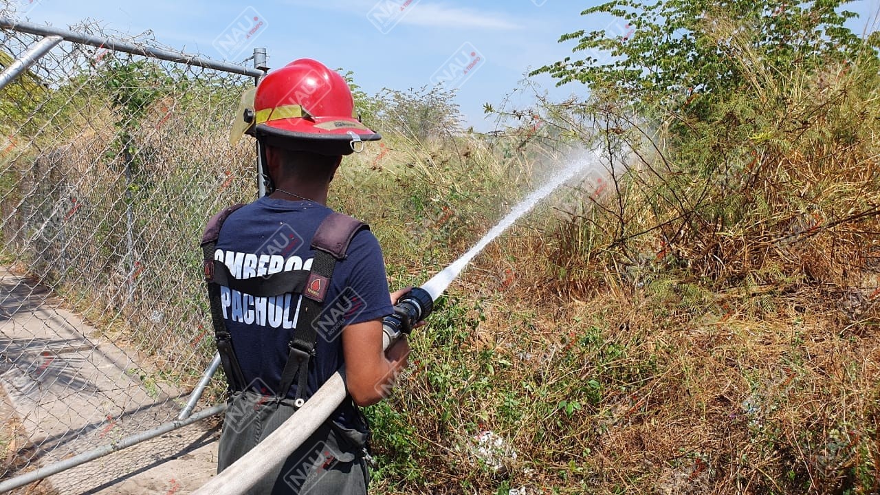 TAPACHULA, CHIAPAS. Un incendio de un predio que se ubica en la entrada al Fraccionamiento La Primavera y que amenazaba en llegar a una empresa de venta de gasolina, fue sofocado por personal del cuerpo de Bomberos y de Protección Civil.