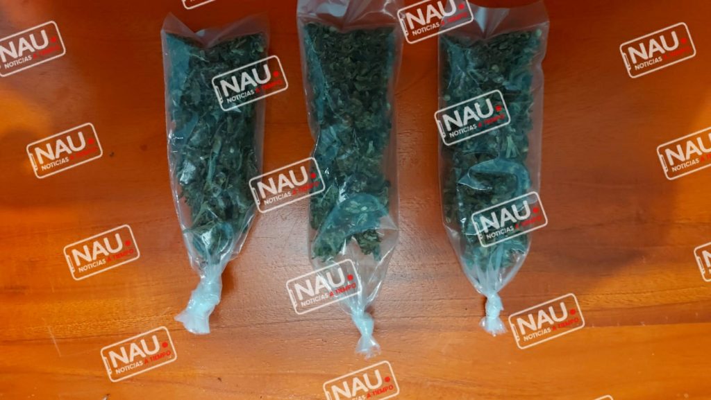 Al aplicarle una revisión corporal se le encontró tres bolsitas de nylon transparente que contenía en su interior hierba seca de color verde con las características de la marihuana.