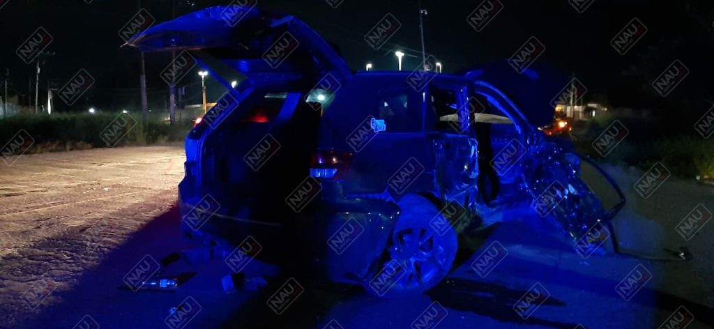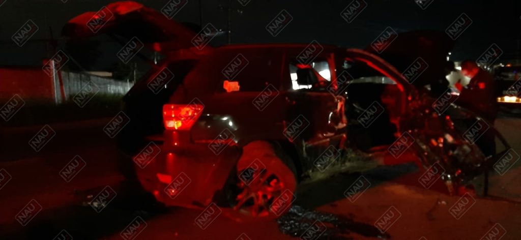 Tapachula, Chiapas. Una camioneta Jeep Grand Cherokee, quedó reducida a chatarra, tras chocar contra un objeto fijo, en el libramiento sur oriente, a la altura de la entrada a Sigma.