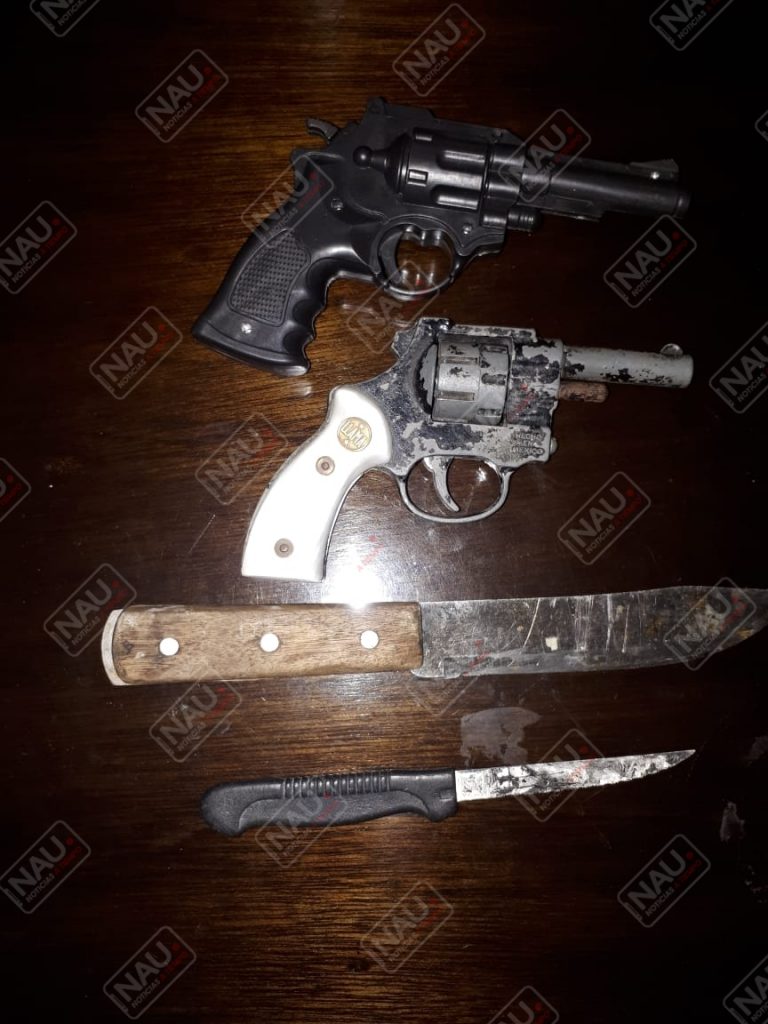 A los detenidos se les aseguró un arma hechiza calibre 22mm. tipo escuadra, con un cartucho útil, se habían robado dos teléfonos celulares marca Samsung J4 y Huawei Y9 color rosa, a una mujer de 21 años de edad.