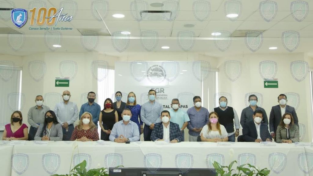 La reunión, se realizó bajo estrictas medidas preventivas de sanidad en las instalaciones de delegación de la Fiscalía General de la República, en donde el secretario de Canaco Tuxtla, Hugo Porras Pérez, también comentó que “entre los objetivos de generar acercamientos entre el sector comercial y las instituciones de procuración de justicia, es la preocupación de caer en omisiones que se conviertan en faltas a la normatividad”.
