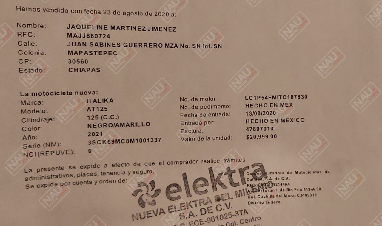 Mapastepec, Chiapas. Una motocicleta marca Italika, modelo at125, de color amarillo con negro, fue robada la noche del pasado jueves en el municipio de Mapastepec.
