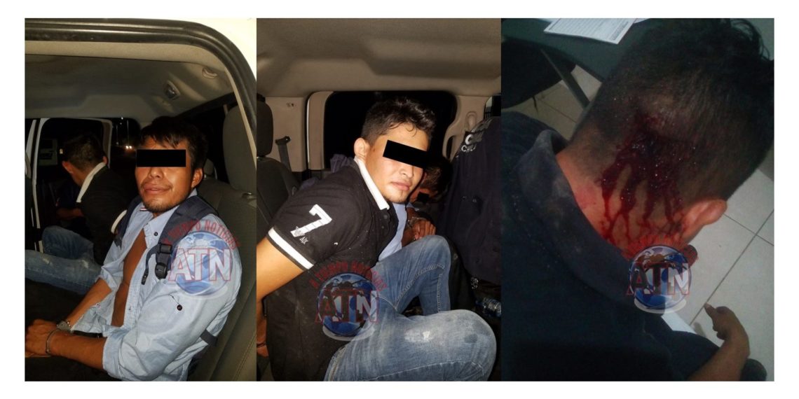 Un agente de seguridad pública municipal resultó con una lesión en la cabeza, mientras que el otro sujeto arrojo piedras a la patrulla, ocasionando daños al parabrisas.