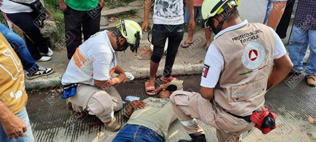 Tapachula, Chiapas. Una persona que se encontraba bajo los efectos del alcohol y viajaba como acompañante del conductor de una motocicleta, se cayó sobre el Boulevard Akishino.