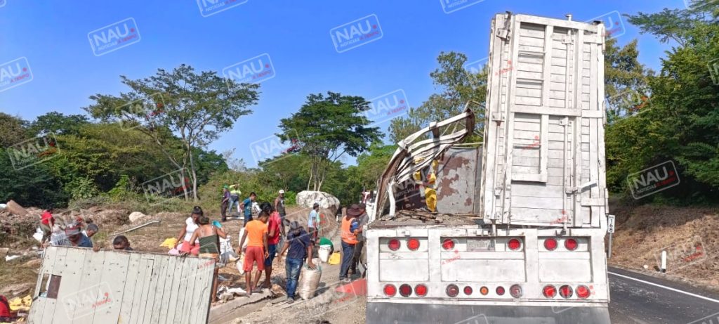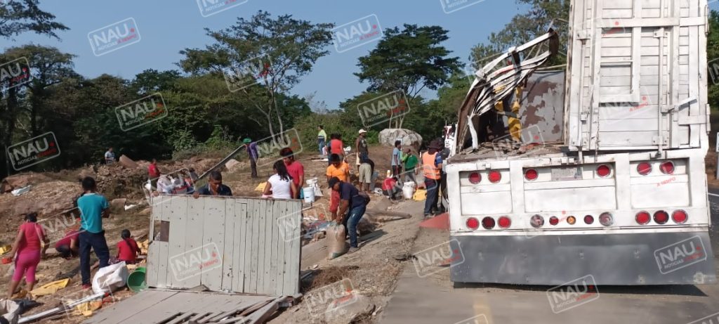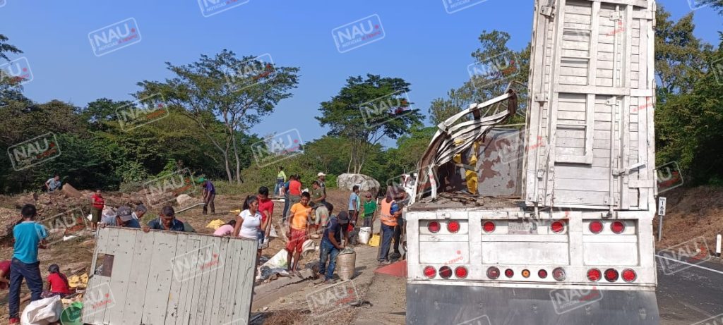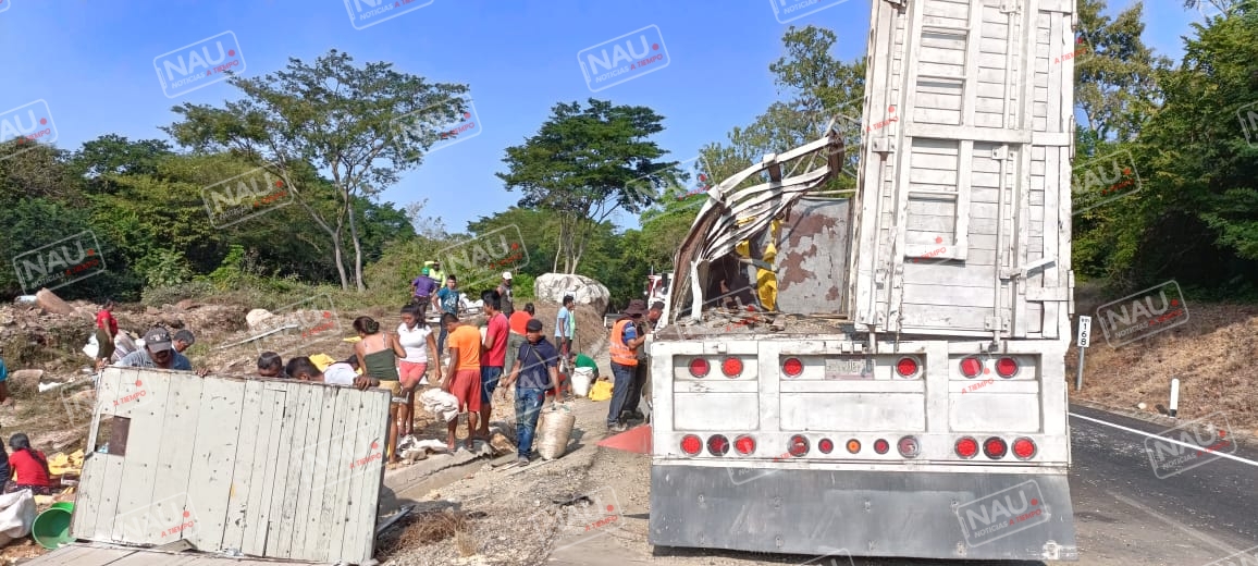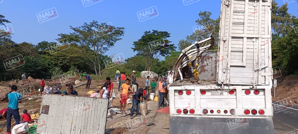 Sobre los hechos, se dio a conocer que una caja seca cargada con maíz, que era jalada por un cabezal de la marca Kenworth, se desprendió y terminó volcado sobre su costado izquierdo.