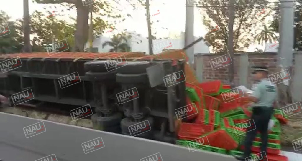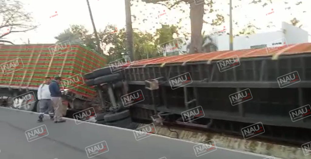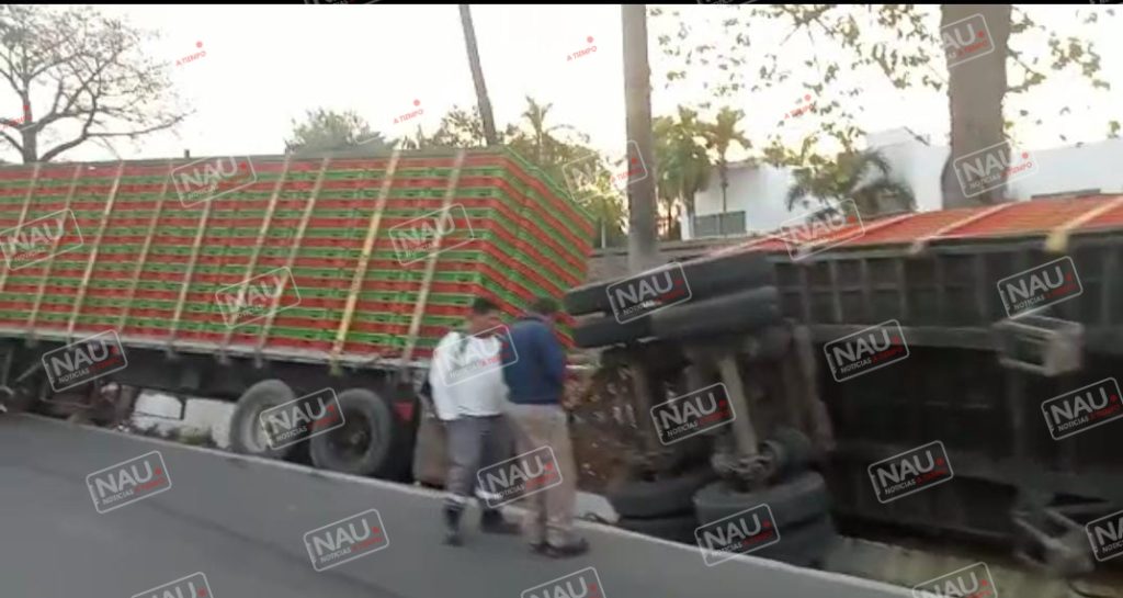 Tapachula, Chiapas. Una plataforma que era jalada por un tráiler, se volcó sobre la carretera Tapachula – Puerto Madero, a la altura del estadio Olímpico.