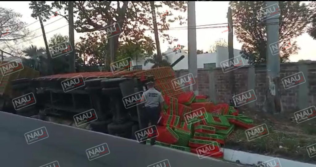 La plataforma propiedad de la empresa Bachoco, con placas del estado de Chiapas, cuyo tráiler era conducido por Julio N. 60 años de edad, explicó que en el momento que transita hacia la empresa Bachoco, sufrió una falla mecánica y terminó volcado sobre su costado derecho.
