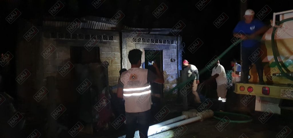 Alrededor de las 23:00 horas, reportaron al centro de emergencia al personal de protección civil sobre un incendio de casa que amenazaba con pasar a otras viviendas, en la comunidad Samuel León Brindis.