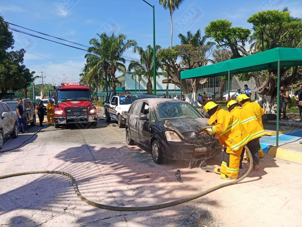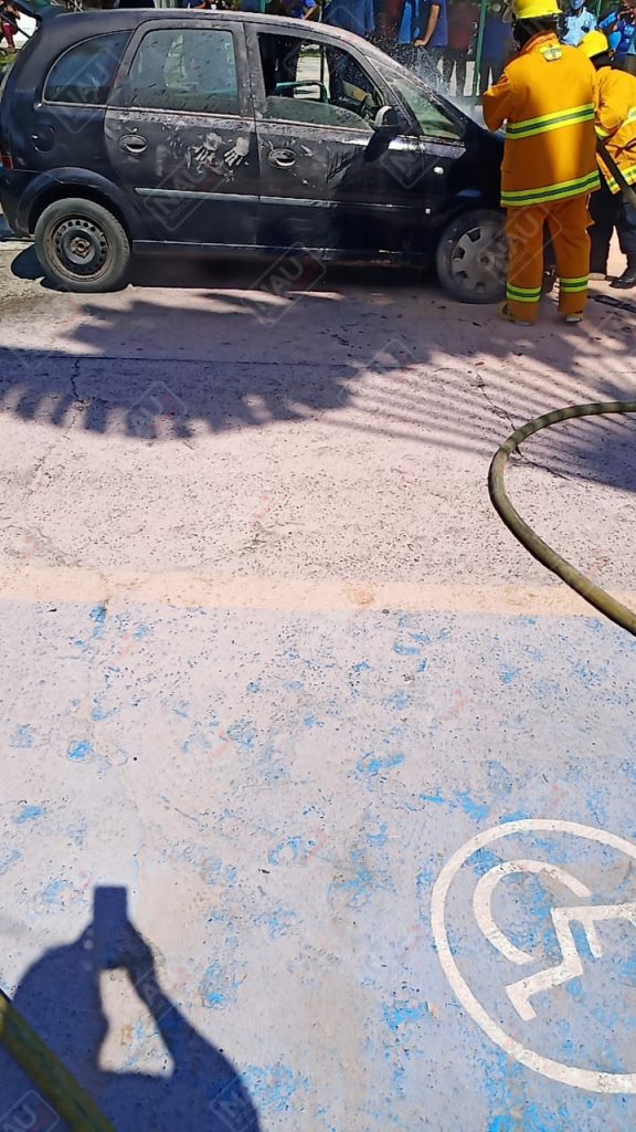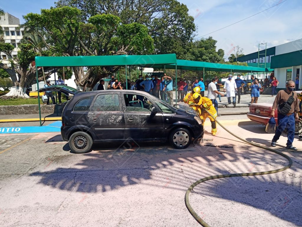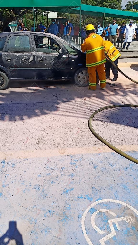 Alrededor de las 11:18 horas, reportaron a través del 911, que en el estacionamiento del edificio antiguo, se estaba incendiado un vehículo y fue apagado con extintor.