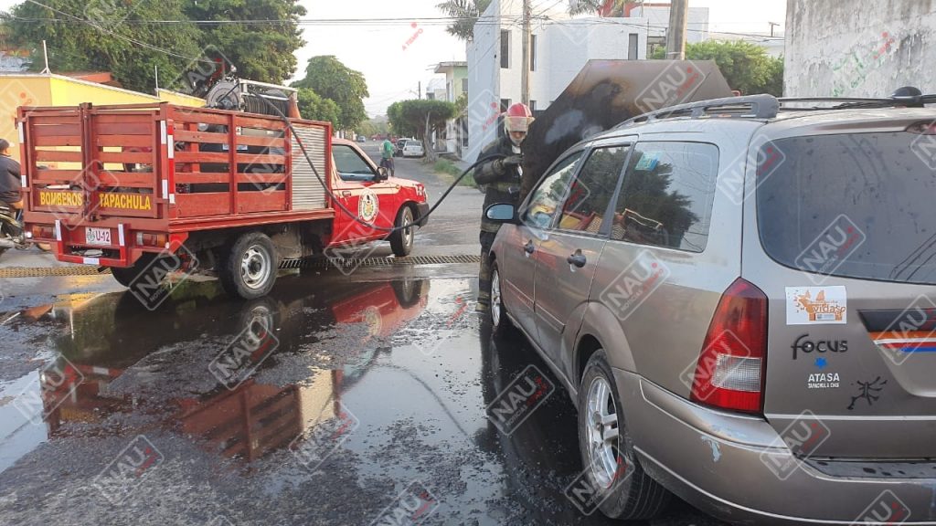 Tapachula, Chiapas. Un vehículo se incendió sobre la 13 avenida norte entre 17a y 19ª calle oriente, tras generarse un corto circuito en el motor.