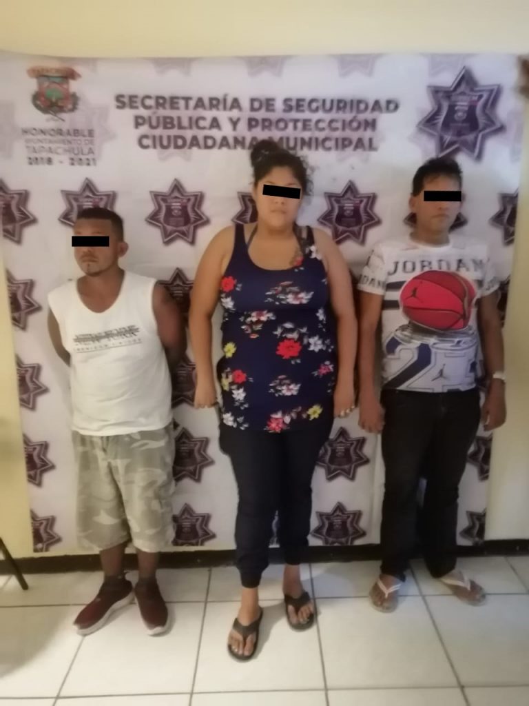 Tapachula, Chiapas.- Cinco personas fueron detenidas y puestas a disposición del Ministerio Público, por delitos contra la salud, luego de que fueron sorprendidas en las inmediaciones del malecón durante un recorrido de vigilancia de la Secretaría de Seguridad Pública y Protección Ciudadana (SSPyPCM).