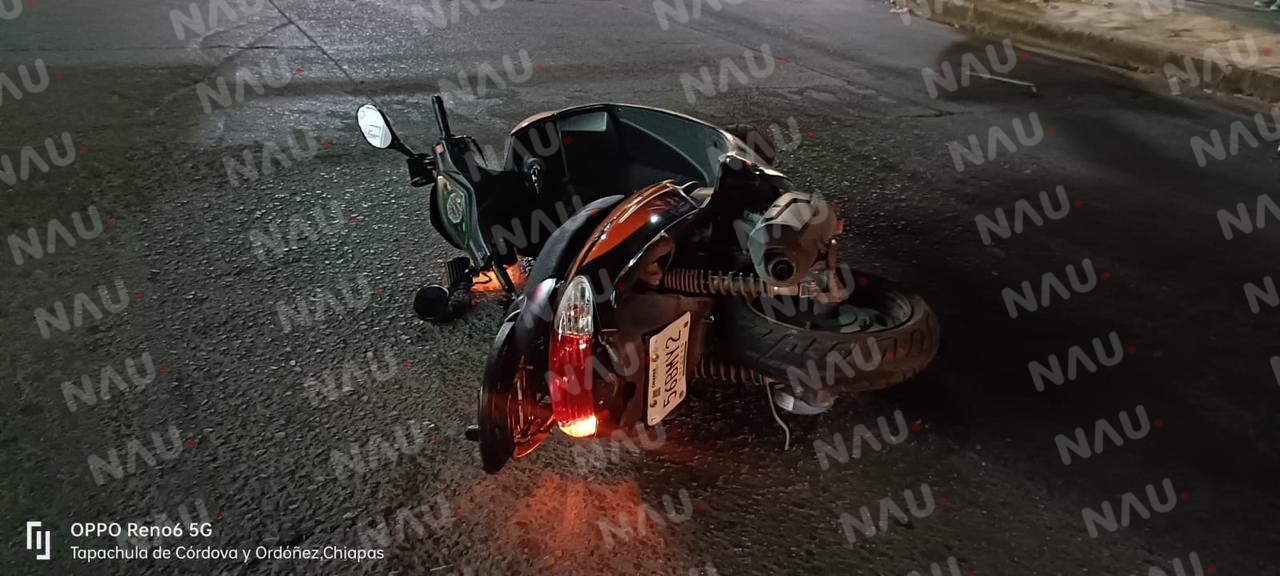Asimismo, una motocicleta marca Italika tipo motoneta, de color negro con naranja, conducida por Eduardo N, quien fue trasladado al hospital Santa Fe, por paramédicos de protección civil municipal de Tapachula.