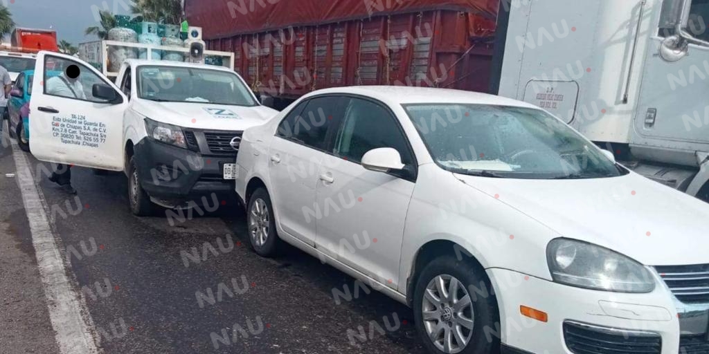 Se presume que la falta de precaución y no guardar su distancia correspondiente, fue el factor para que el conductor de un vehículo Nissan NP 300 en su modalidad reparto de gas doméstico, terminara impactado contra la parte trasera de un automóvil VolkswagVento nto de color blanco, el cual circulaba sobre la carretera costera Tapachula – Viva México, a la altura del ejido Viva México.
