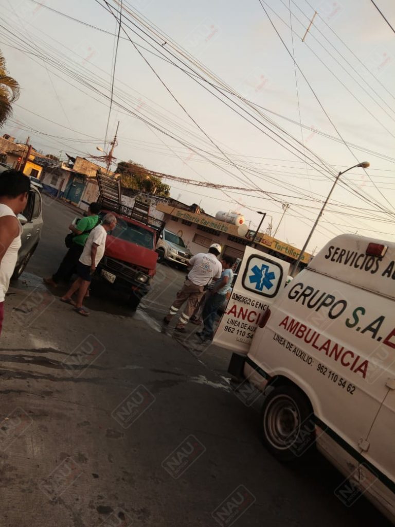 Al llegar a la 2ª avenida norte, no hizo el alto correspondiente de la vialidad, aunque en el lugar hay un disco de Uno X Uno, intentó pasar la avenida, fue impactado por un vehículo Nissan Pick Up de color rojo, conducido por Alberto N., quien se desplazaba de sur a norte sobre la 2ª avenida sur.