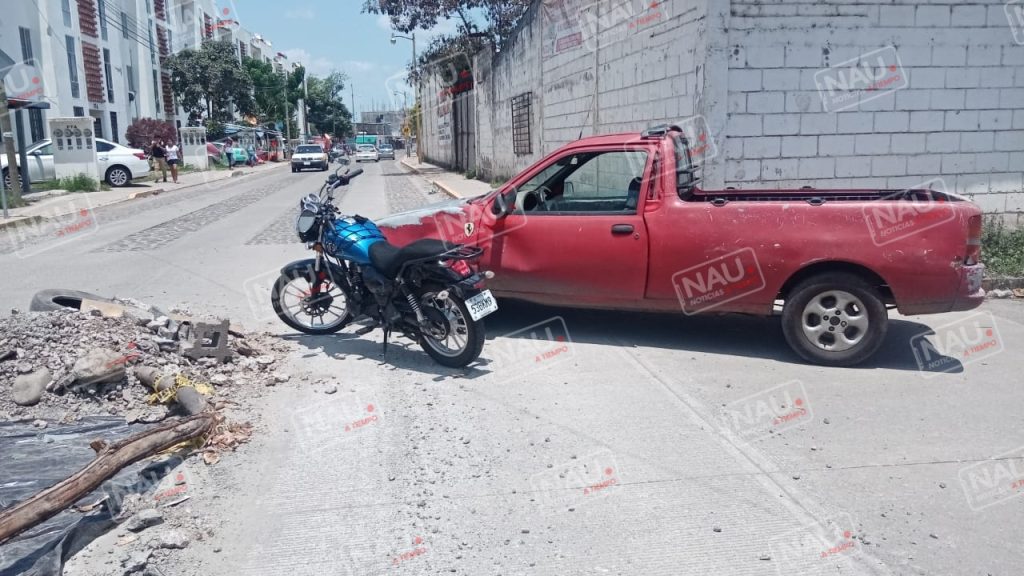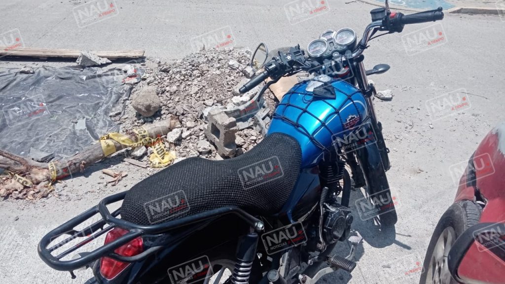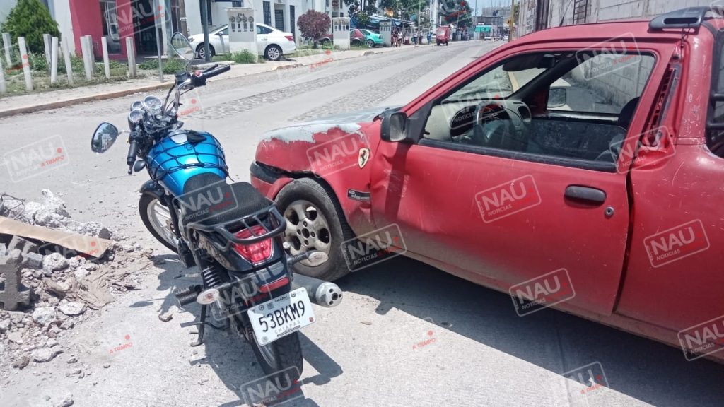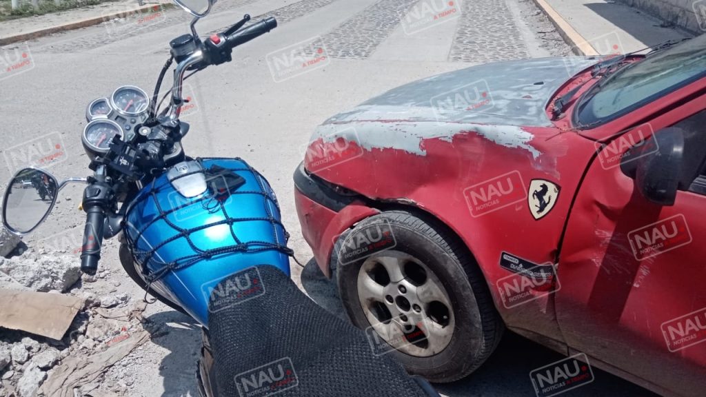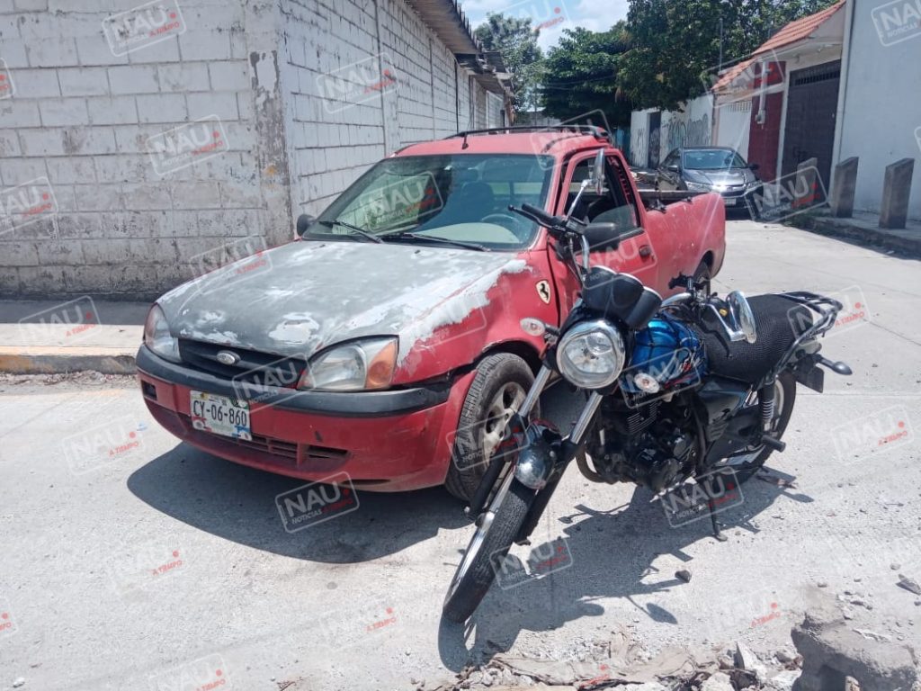 Tapachula, Chiapas. El choque de una motocicleta y un carro en la Colonia Villa de las Flores, calle Tulipanes y avenida las Hortensias, frente a la habitación la flora, dejó solo daños.