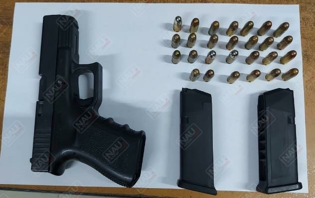 Al aplicarle una revisión, le encontraron tres bolsitas de marihuana, así como un arma de fuego de uso exclusivo del ejército, sin permiso.