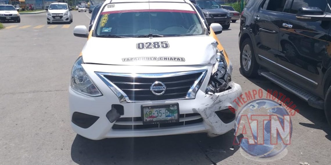 Tapachula, Chiapas. Daños materiales dejó un choque entre un taxi local y una camioneta, esto en la 4a avenida sur prolongación, frente a la tienda de Sam’s club.