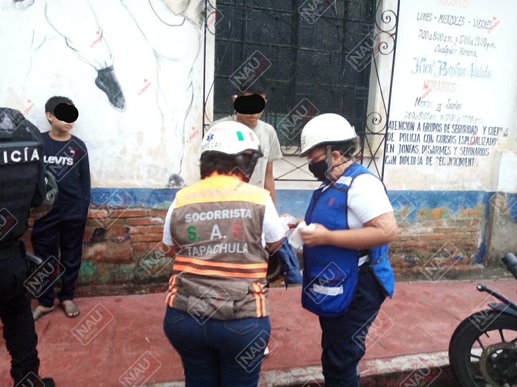 TAPACHULA, CHIAPAS. Una persona fue atropellada por un taxi que se dio a la fuga, fue atendido por paramédicos del Grupo de Servicios Auxiliares de Emergencia.