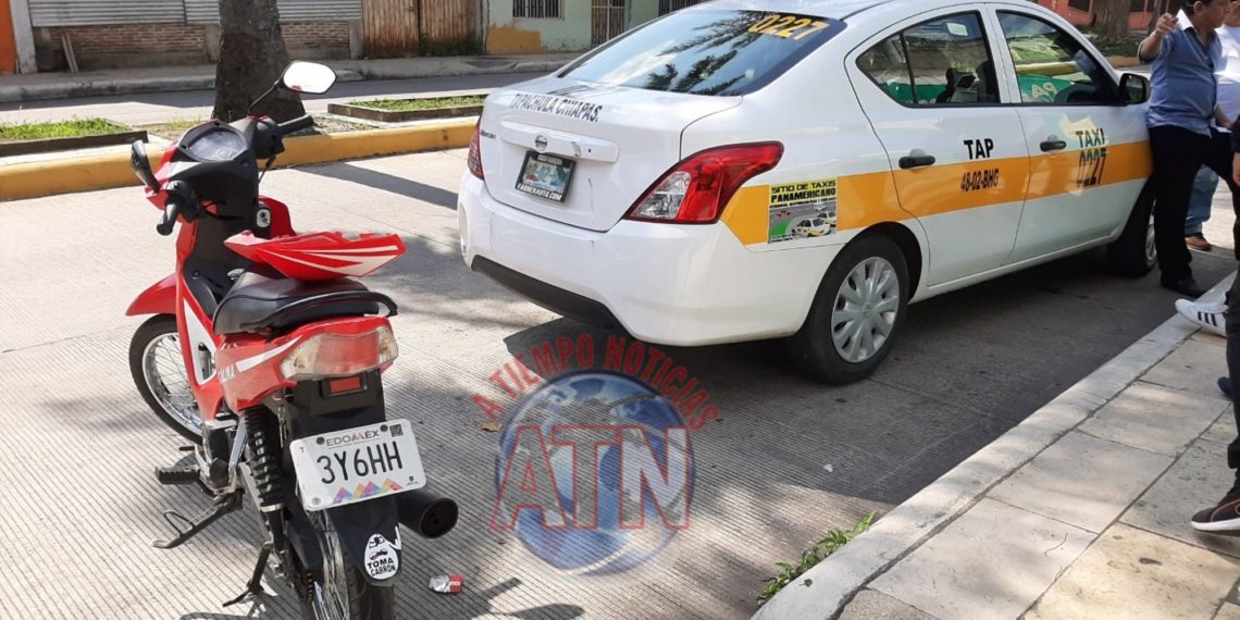 Tapachula, Chiapas. – El conductor de un taxi ocasionó un accidente, luego de que hizo corte circulación a un motociclista, en la calzada Las Palmas, entre 2a privada calle oriente y 2a calle oriente.