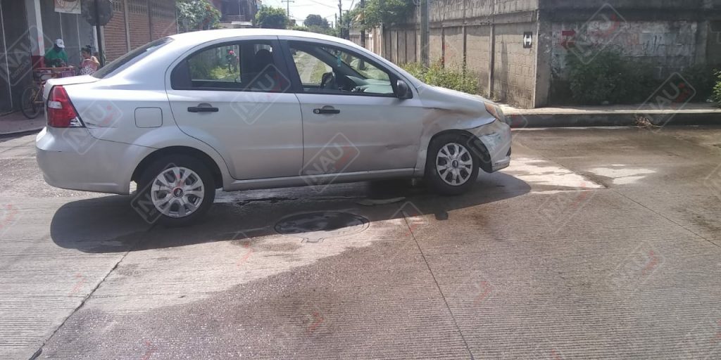 El percance se registró alrededor de las 12:00 horas del pasado jueves, cuando un conductor de un vehículo Taxi 0460, impactó al conductor del vehículo Chevrolet Aveo en color gris, que era conducido por Vanesa N, y se desplazaba de oriente a poniente sobre la 30a calle oriente, con vía de preferencia.