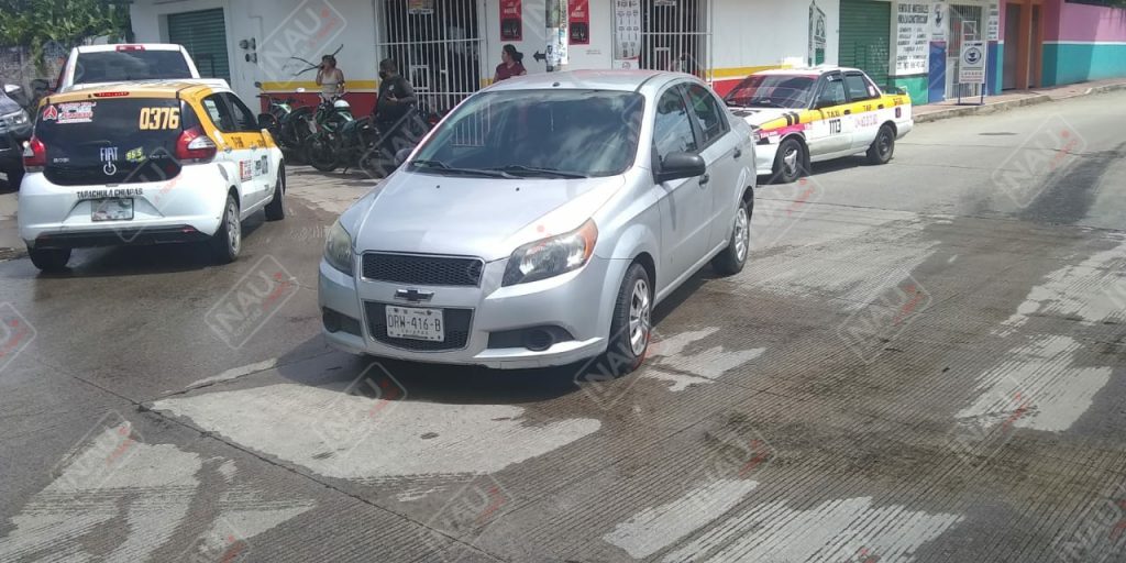 Tapachula, Chiapas. El Conductor de un taxi se dio a la fuga, luego de chocar contra un automóvil aveo, sobre la 5a privada avenida sur y esquina con la 30a calle oriente, colonia Benito Juárez.
