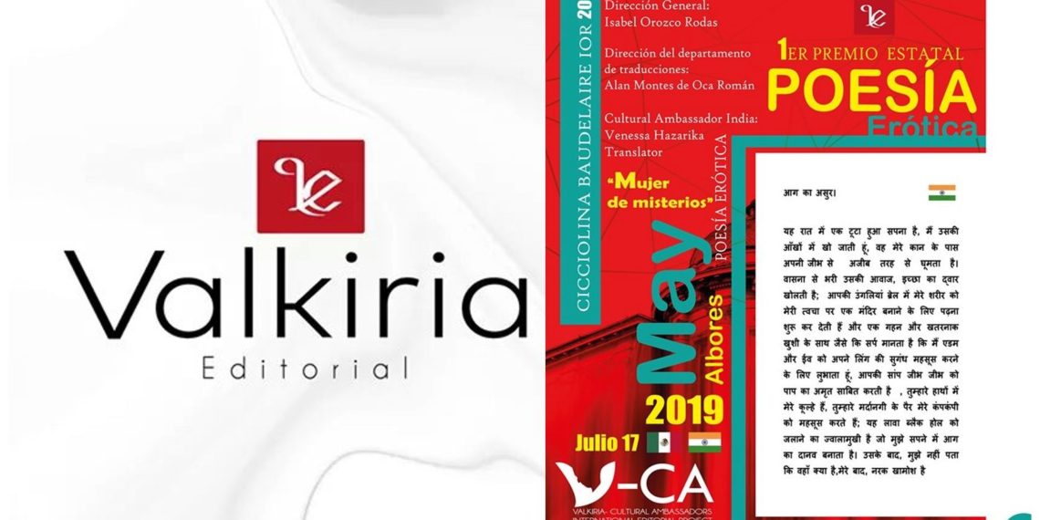 La directora internacional de Editorial Valkiria, Isabel Orozco Rodas dio a conocer que uno de los poemas que forman parte de “Mujer de Misterios” de la escritora originaria de Tuxtla Gutiérrez, fueron traducidos por la Embajadora Cultural Valkiria en la India, Venessa Hazarika a través de V-CA Internacional Editorial Projet y el director del Departamento de Traducciones, Alan Montes de Oca Román.