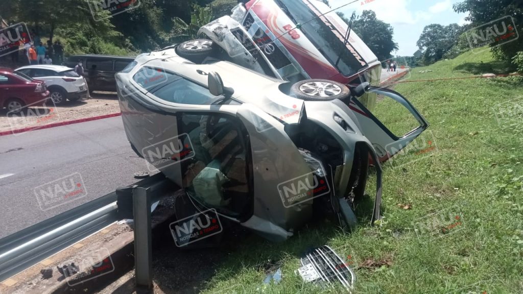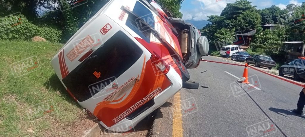 Con lesiones quedó el conductor de la combi de pasaje que responde nombre de Abimael N. de 33 años de edad, quién resultó con lesiones en el cuello, pero se negó a ser trasladado al hospital.