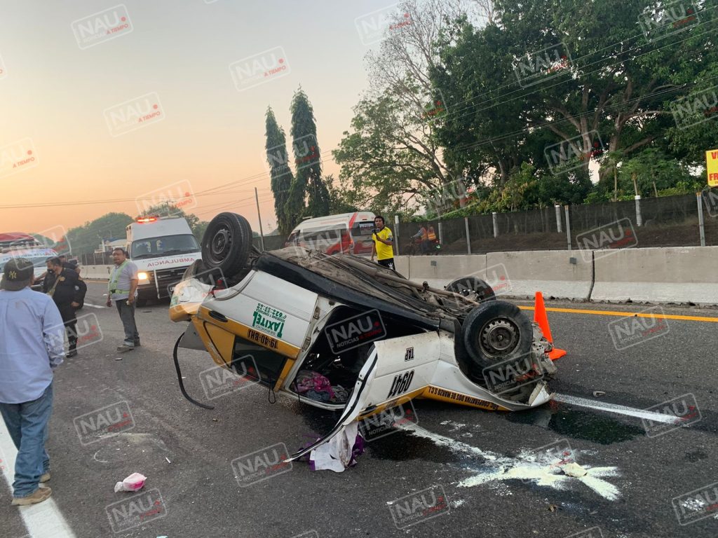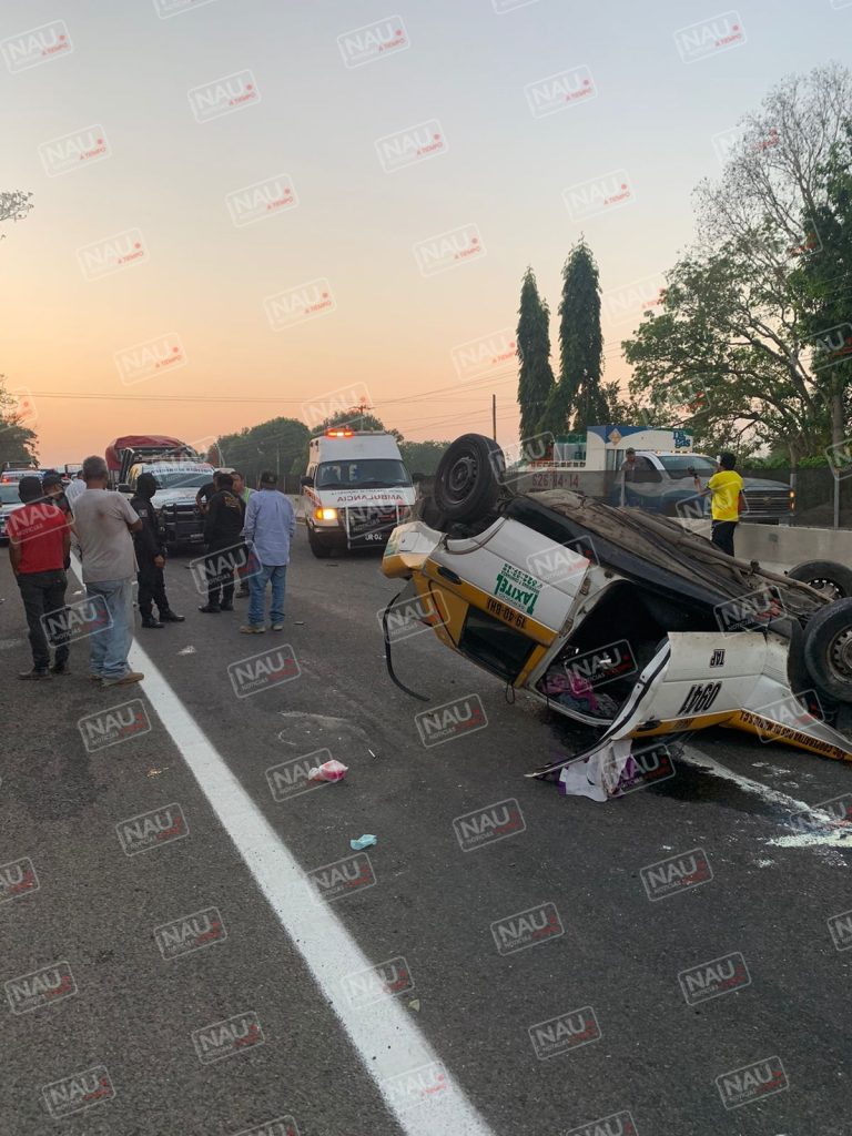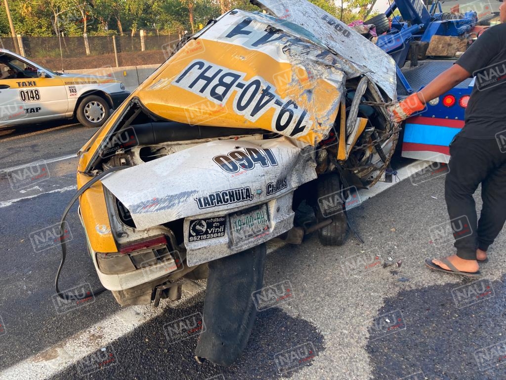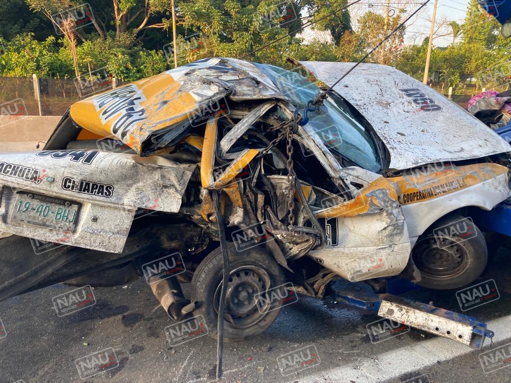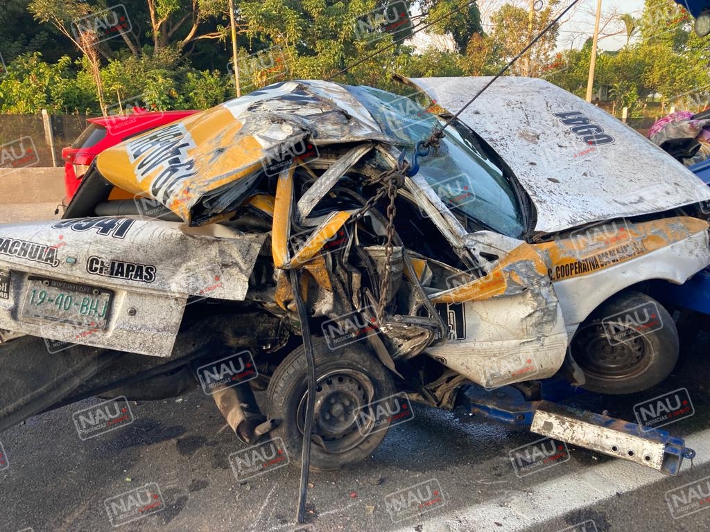 Alrededor de las 5:40 de la mañana, reportaron el centro de emergencia un accidente sobre el tramo carretero Tapachula a Huixtla, a la altura del ejido Poste Rojo, donde una camioneta de color negro intentó rebasar al taxi, pero pierde el control y choca contra la unidad de pasaje con número económico 0941, de la empresa Taxitel.