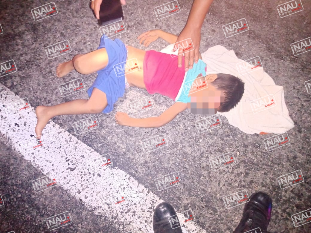 En el lugar localizaron a la señora Evelyn Concepción n de 24 años de edad, quién dio a conocer que un vehículo atropelló a sus tres menores hijos, de nombres Pablo Francisco de 5 años, Michel Jasmin de 6 años y Nancy n de 9 años de edad.