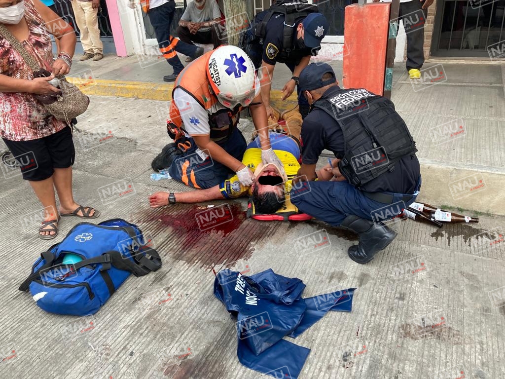 La persona lesionada vestía un short de color azul, una playera color amarilla y se encontraba en un charco de sangre, al lugar arribaron elementos de la secretaría de seguridad pública y protección ciudadana, quiénes le brindaron los primeros auxilios.