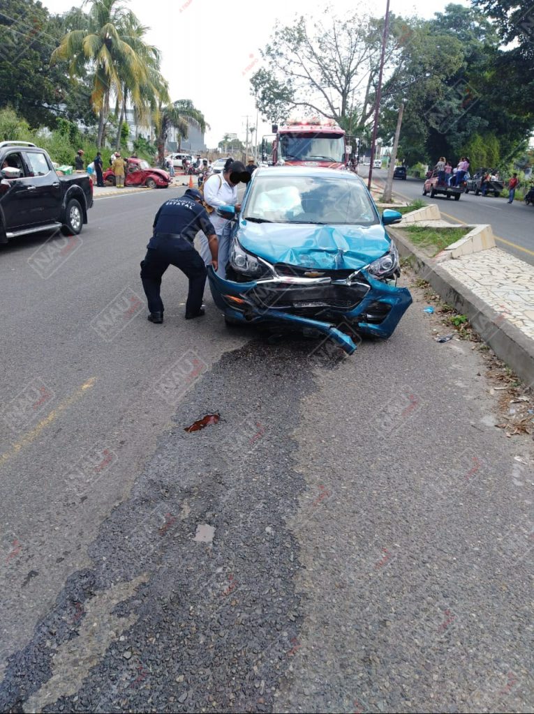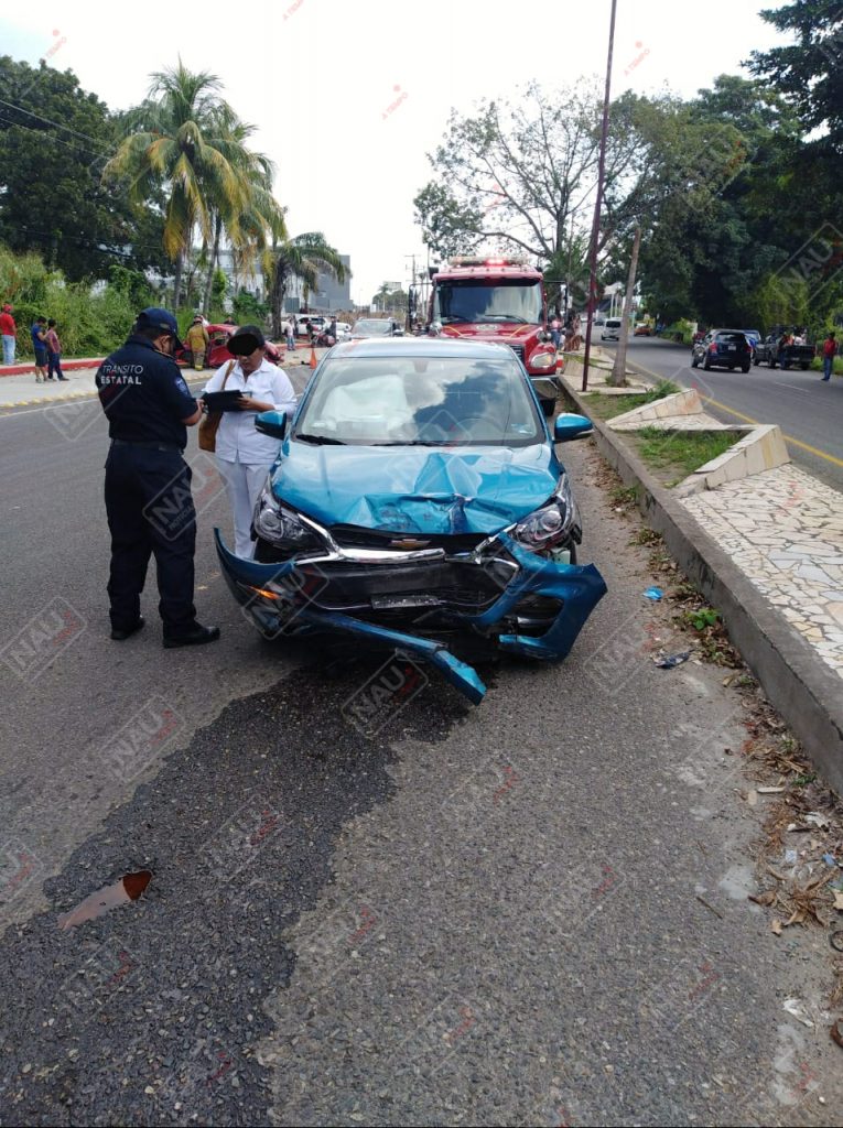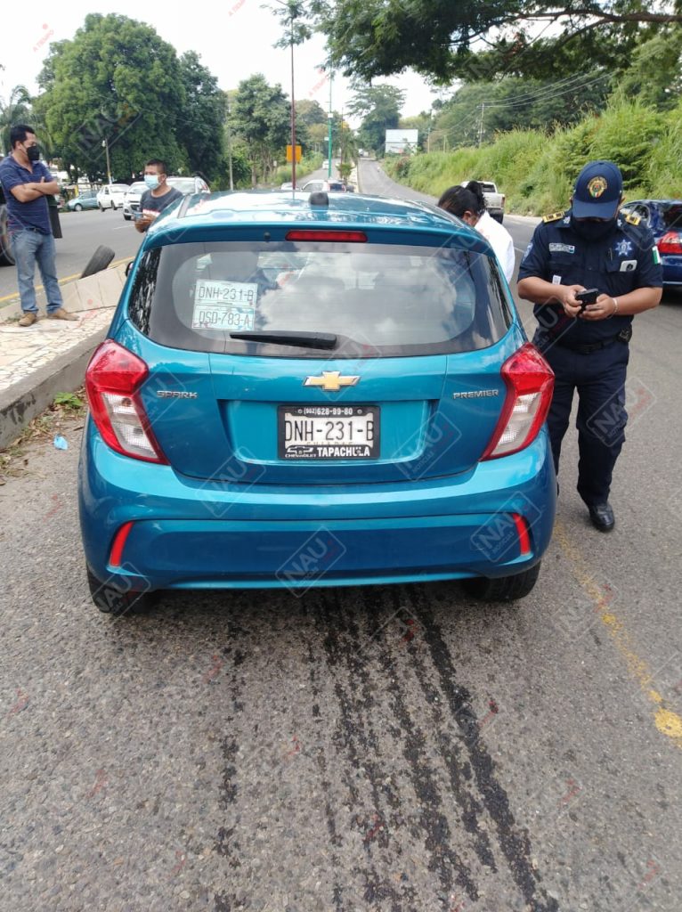 Al pasar el entronque de Framboyanes, otro vehículo le hizo corte de circulación, el cual se dio a la fuga, perdió el control, se montó al camellón e invadió carril contrario, chocando de frente contra el vehículo Chevrolet Spark, con placas del estado de Chiapas, conducido por Mariana N de 25 años.