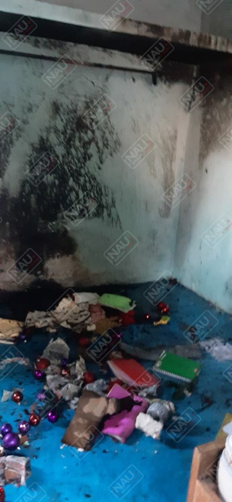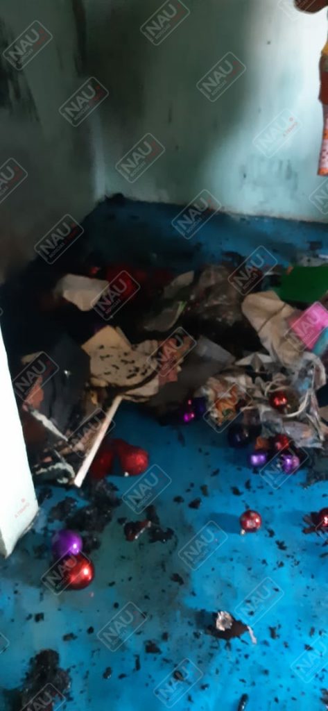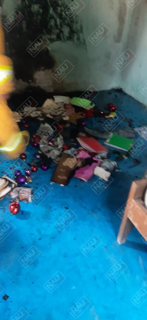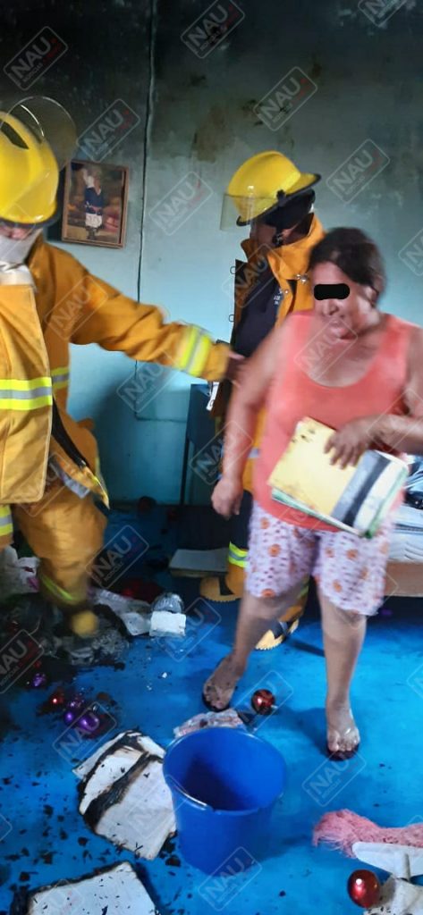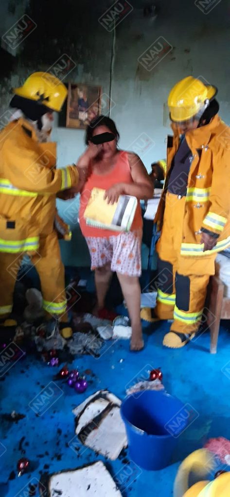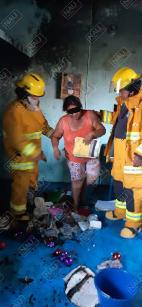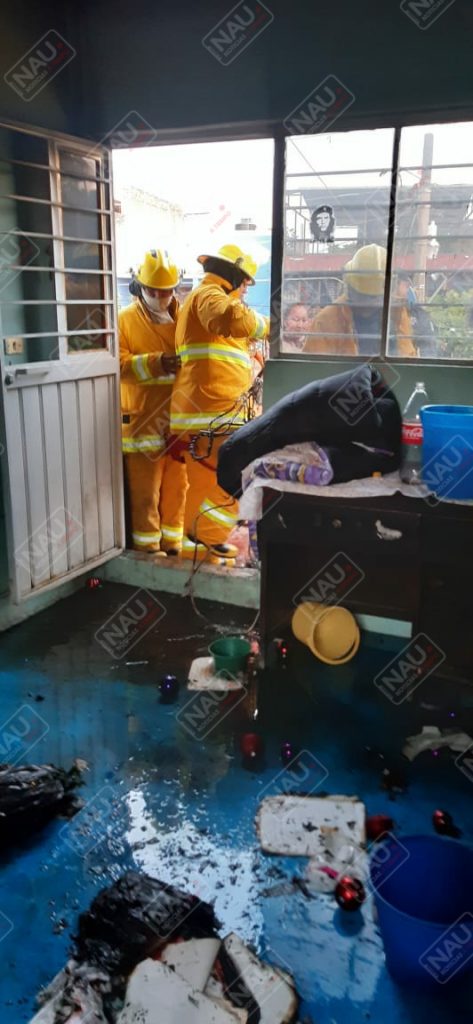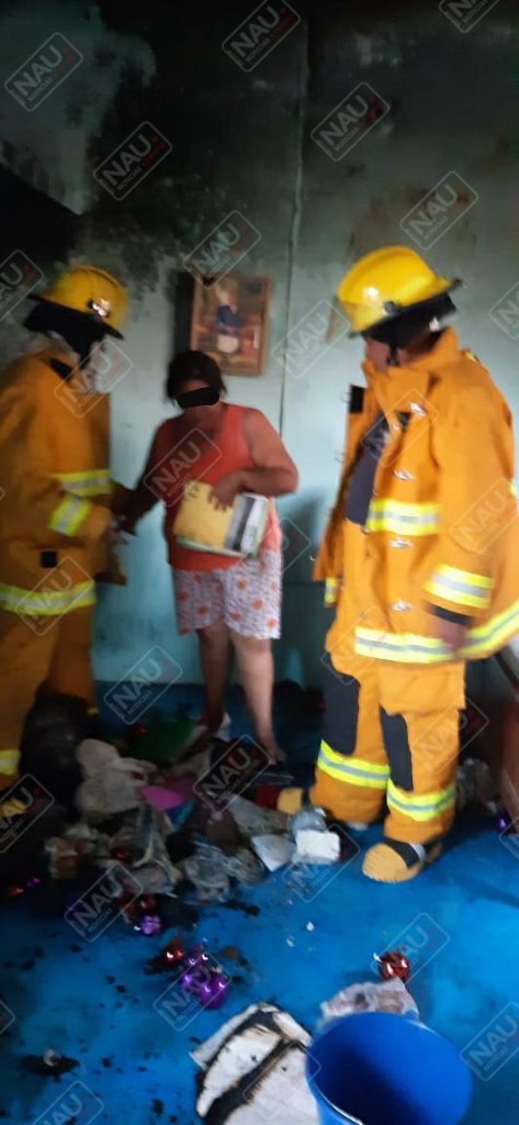 Personal del cuerpo de bomberos arribó al lugar, donde la propietaria de la casa explicó que su hijo había quemado cohetes y habían agarrado fuego papeles, ropa y una mesa en la segunda planta.