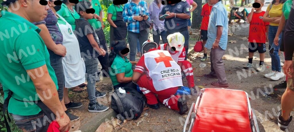 Los hechos se dieron sobre la calzada Manuel Velasco Suárez, a la altura del COBACH, al lugar acudieron paramédicos de la cruz roja mexicana, quienes atendieron a la lesionada.
