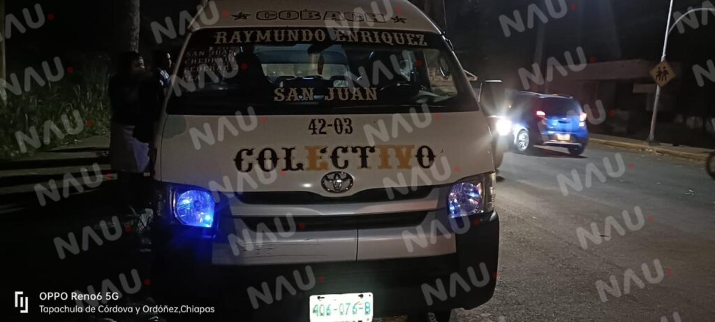 Tapachula, Chiapas. Una pasajera de 30 años de edad, resultó con lesiones en diferentes partes del cuerpo, luego de que el conductor de una combi de la ruta Raymundo – Centro, se paso el paso peatonal a exceso de velocidad.