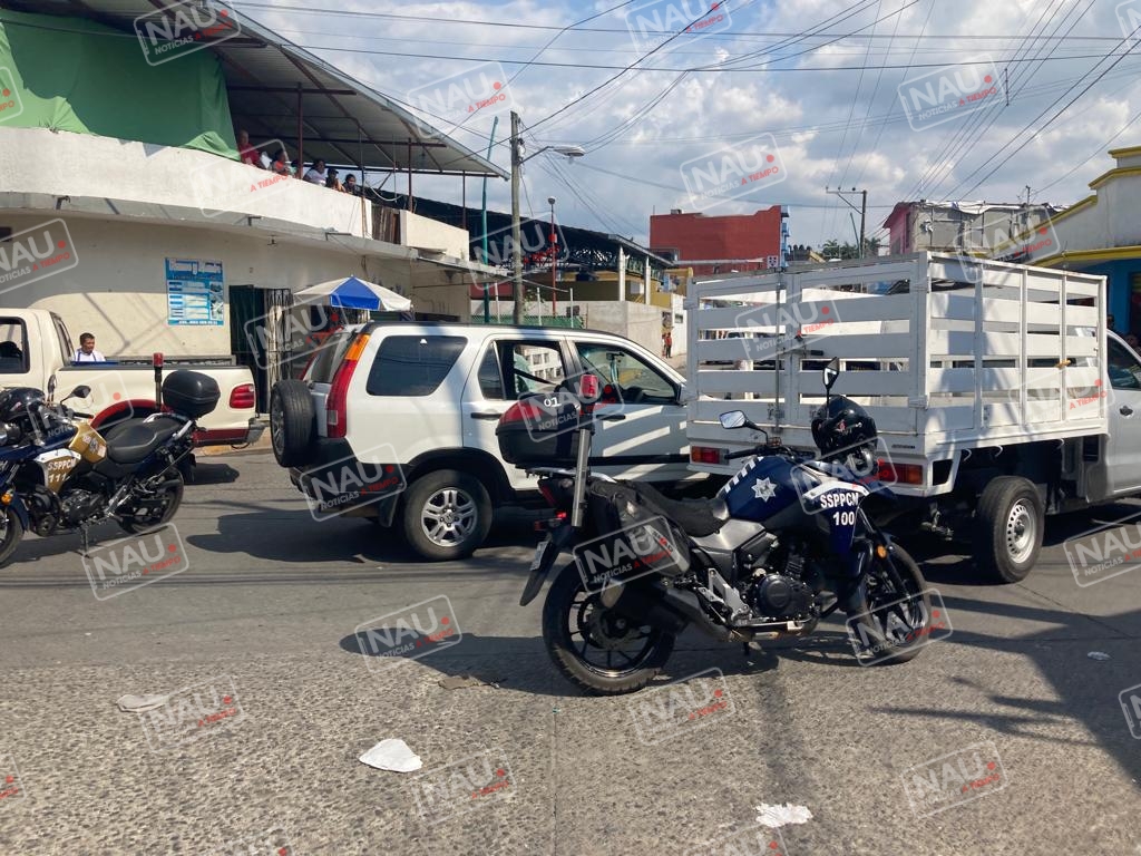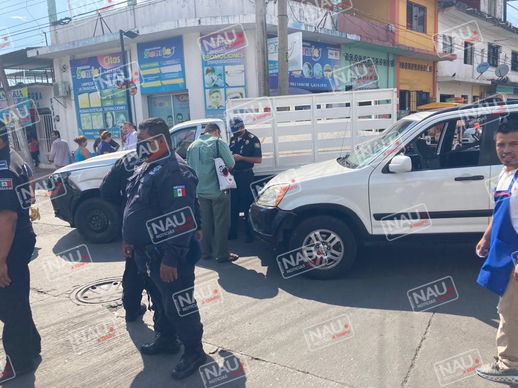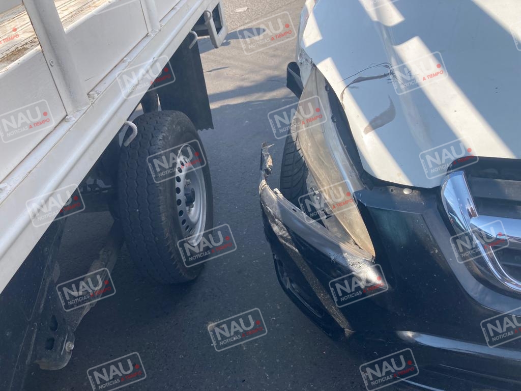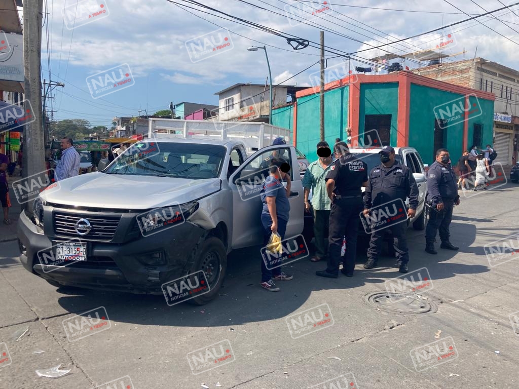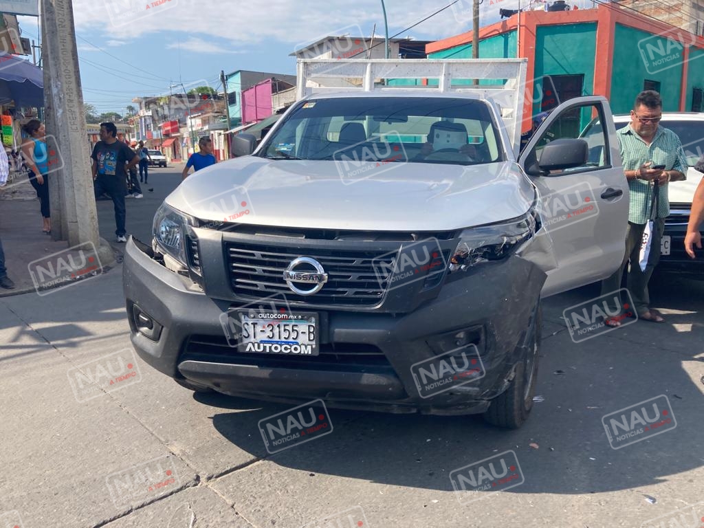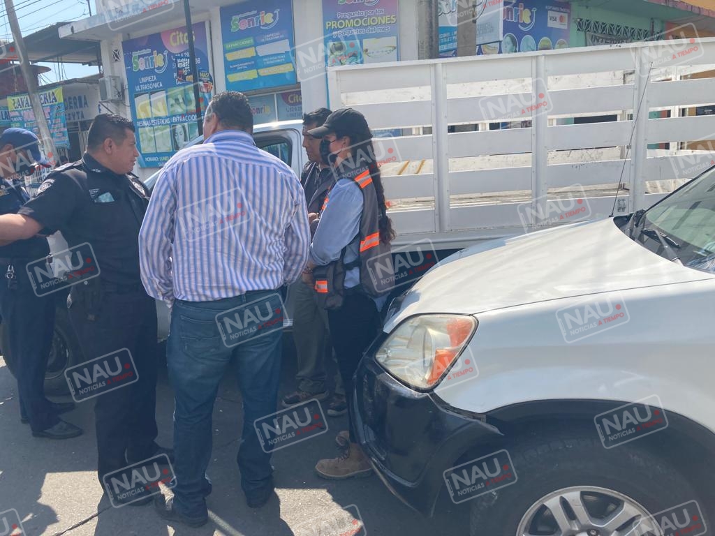 Taxi se impacta contra pipa de agua en el centro de Tapachula; sólo daños materiales
