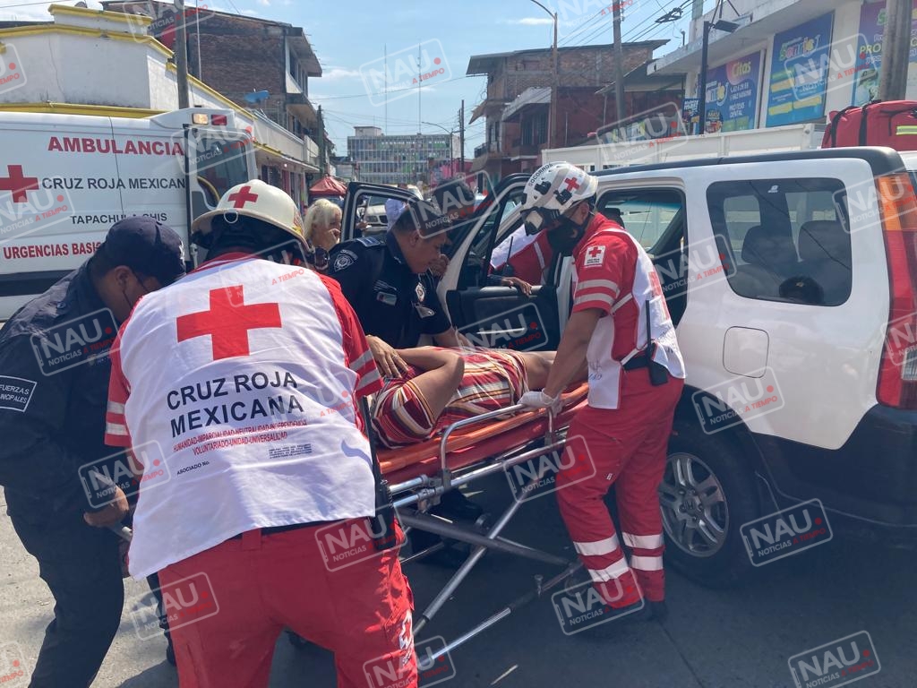 Mujer lesionada tras choque entre un Aveo y un triciclo de pasaje en Cacahoatán