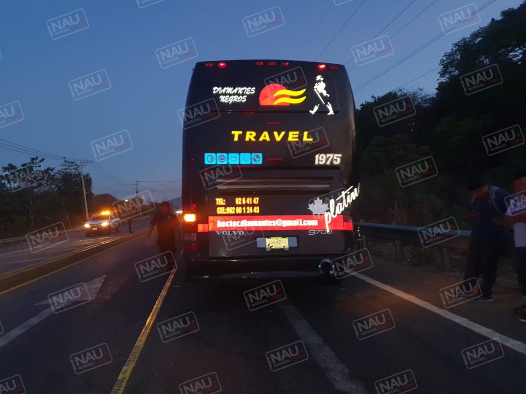 En el lugar se localizo un vehículo marca Volvo tipo autobús, de color negro, con placas de servicio público federal de turismo con número económico 1975, de la empresa Diamantes Negros, conducido por Dani de 43 años de edad, con domicilio en Tapachula.