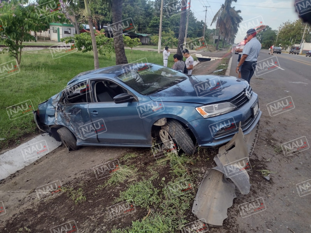 Tapachula, Chiapas; 6 de mayo de 2022.- Un automóvil Volkswagen Jetta de color celeste con placas del estado de Chiapas, se salió de la cinta asfáltica en el tramo carretero Tapachula – Puerto Madero, a la altura de la empresa Disagro, quedando con daños materiales de consideración.