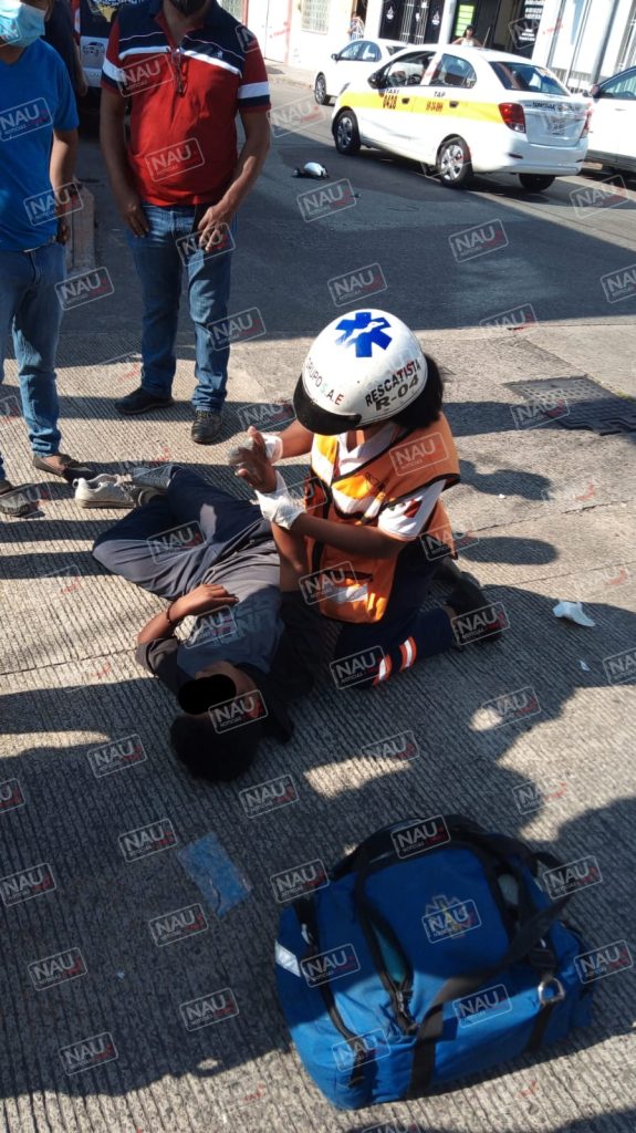 Tapachula, Chiapas. Un motociclista resultó lesionado, luego de ser impactado por un vehículo sobre la tercera avenida Norte y séptima calle Oriente de Tapachula.