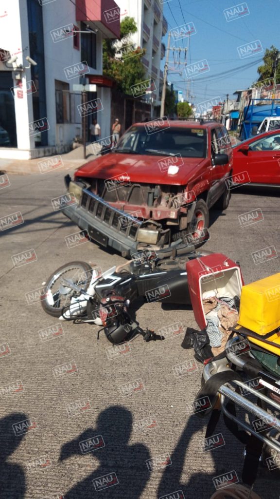 Al llegar a la tercera avenida Norte, impactó a un motociclista que se dedica a la venta de tortillas, marca Italika con placas del estado de Chiapas, que circulaba sobre la tercera avenida norte de norte a sur, con vía de preferencia.