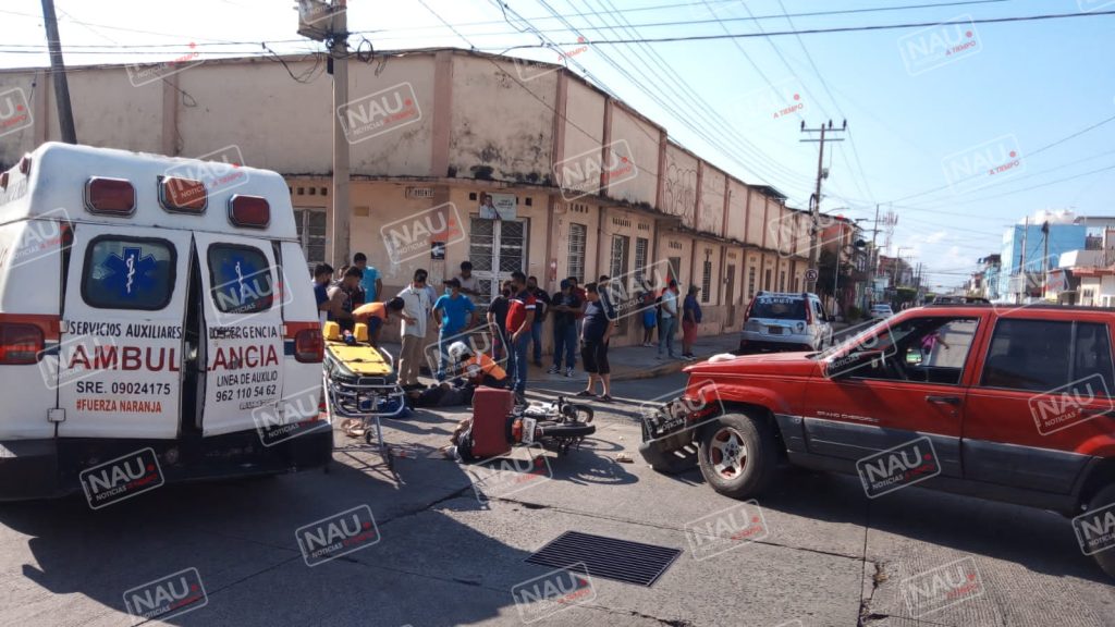 El motociclista resultó con lesiones, mismo que fue auxiliado por paramédicos de servicios auxiliares de emergencia, fue trasladado al hospital general de Tapachula.