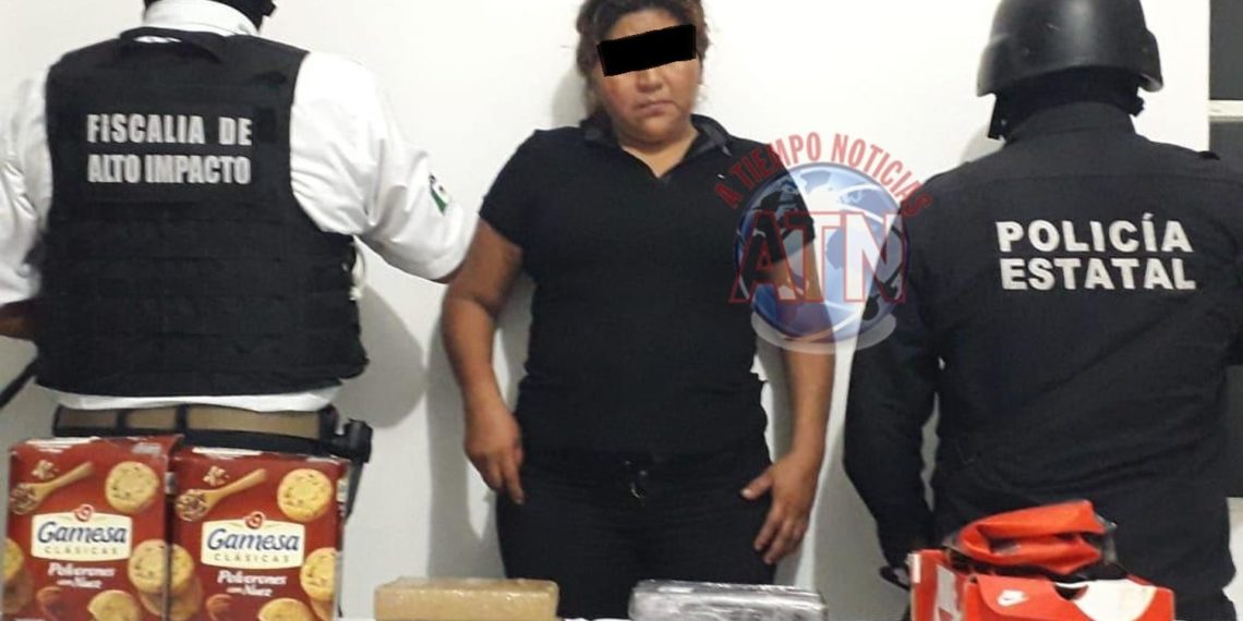 La detenida dio a conocer que la droga la entregaría en Tapanatepec, Oaxaca, donde le pagarían doce mil dólares cada kilo y su trabajo es el transporte de Tapachula hacia Oaxaca.
