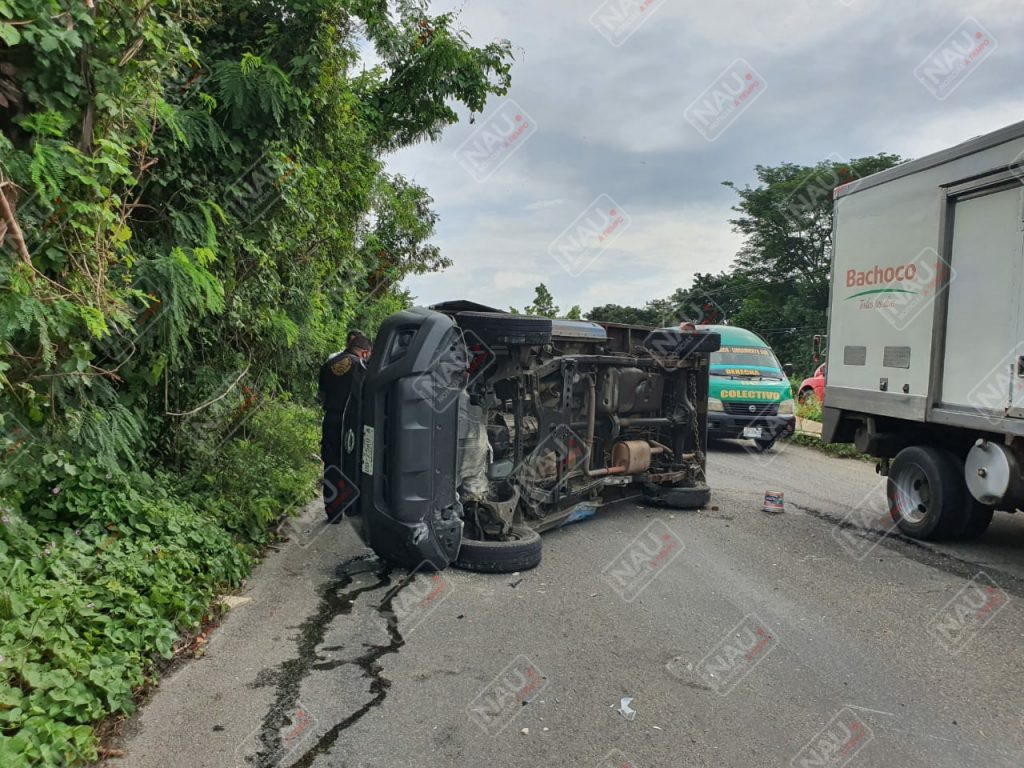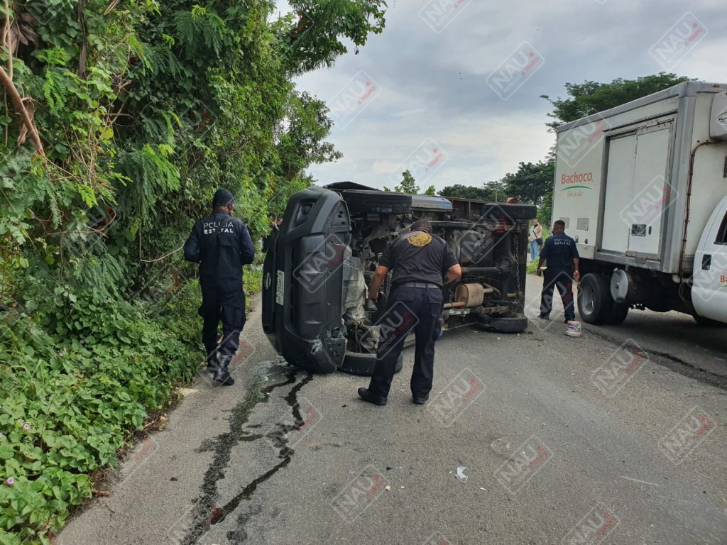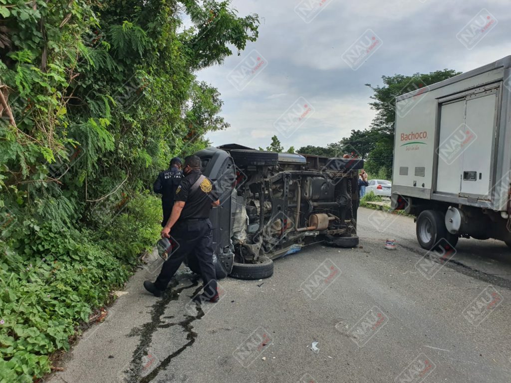 El conductor dio a conocer que se ponchó una llanta trasera, lo que hizo que perdiera el control del volante, chocará contra el camellón central y terminó volcado en sentido contrario, por lo que una grúa levantó el vehículo y fue puesto a disposición de las autoridades, por el delito de ataques a las vías de comunicación.