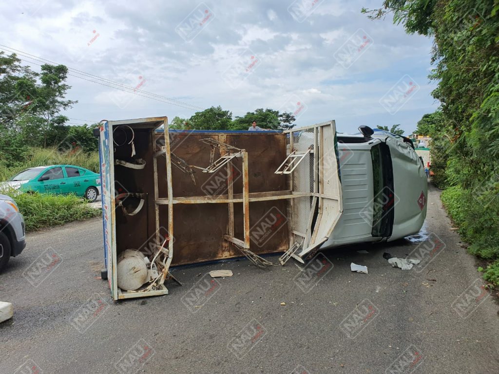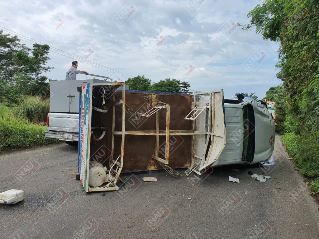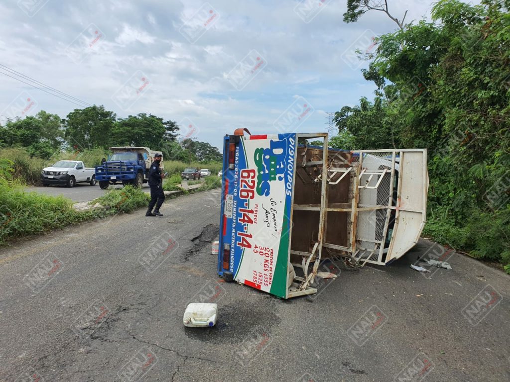 Tapachula, Chiapas. Daños materiales por varios miles de pesos, dejó la volcadura de un vehículo Nissan de la empresa Damigas, mismo que terminó volcado sobre la carretera Tapachula – Viva México.