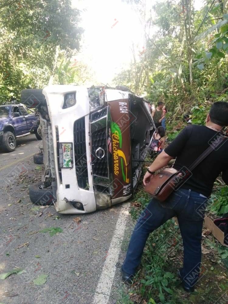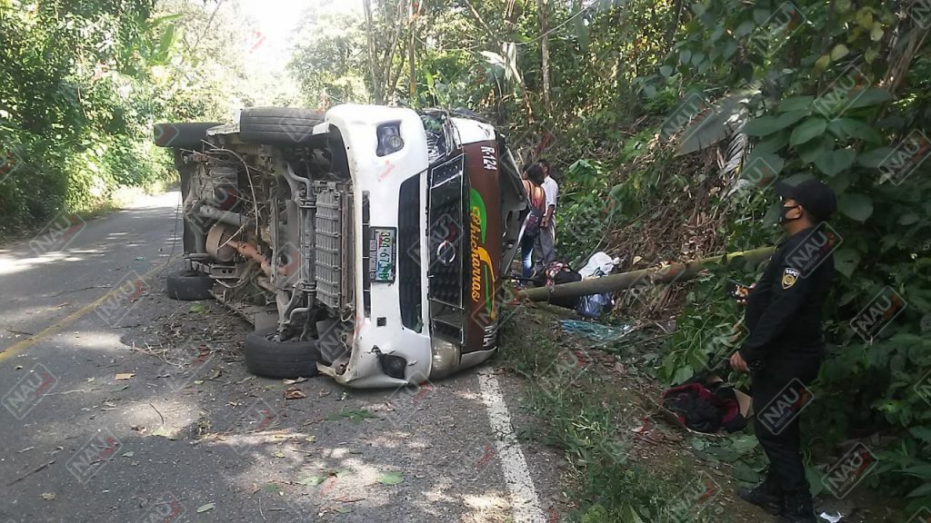 El percance se registró alrededor de las 12:10 horas de este lunes, donde las autoridades localizaron una combi de la empresa autotransportes Chicharras, volcada a la altura del kilómetro 20 de la carretera Tapachula – Nueva Alemania, a la altura del crucero la parada guardianía y 26 de octubre.