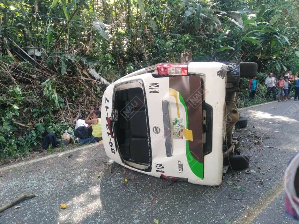 Tapachula, Chiapas. Cuatro personas lesionadas, fue el saldo de la volcadura de una combi colectiva de la ruta Tapachula – Zaragoza de la empresa Chicharras.
